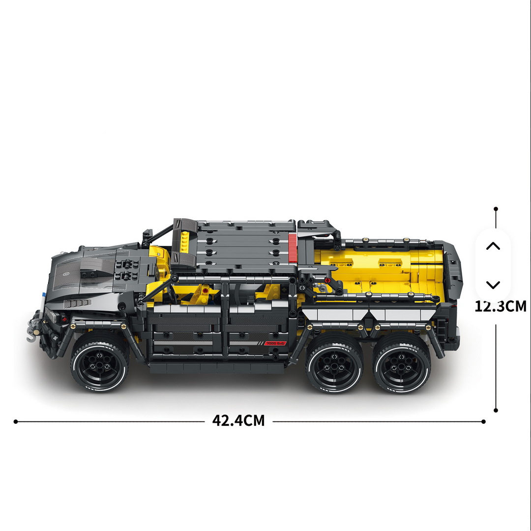 Inspirat de iconicul Brabus G700 6×6, folosit în expediții extreme și competiții de anduranță, acest set capturează esența unui vehicul de ultimă generație conceput pentru putere brută și explorare fără limite. Caroseria lată și impunătoare, construită cu linii fluide și precise, reflectă designul aerodinamic optimizat pentru viteză pe asfalt și stabilitate pe teren accidentat.