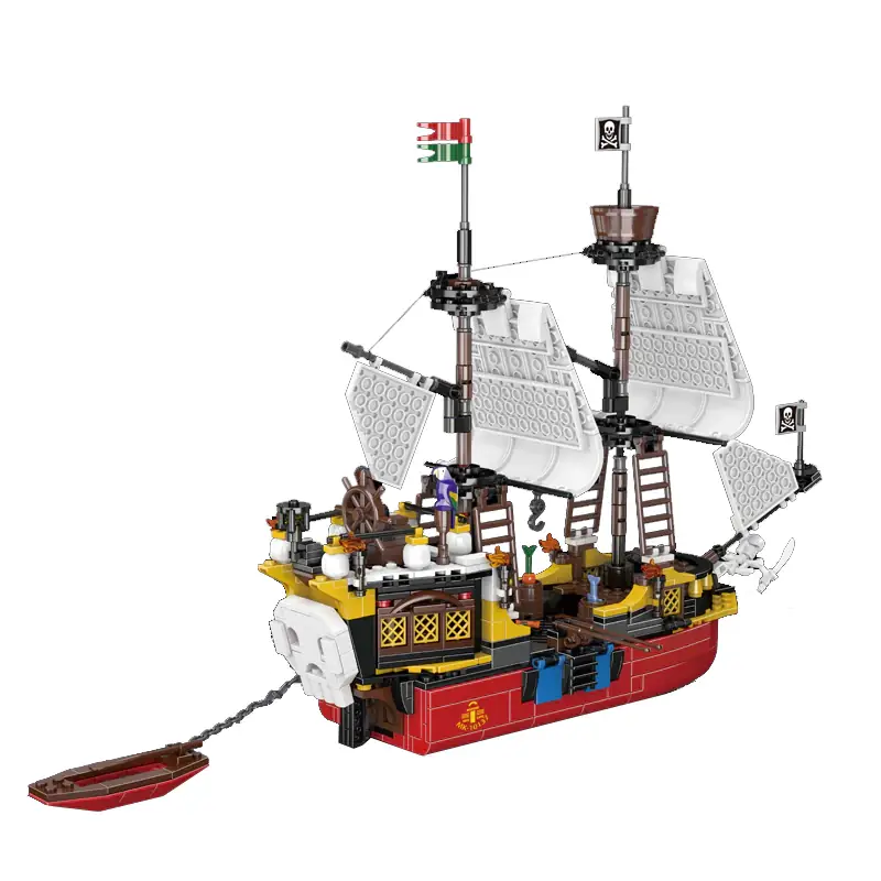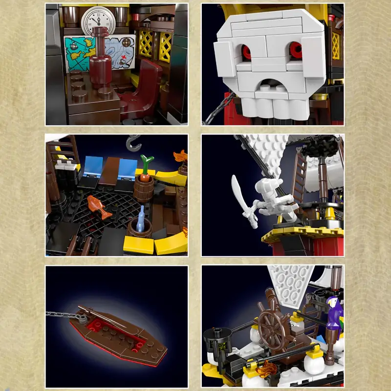 Setul de construcție Mould King 10137 Corabia Piratului Barbă Roșie este un model detaliat al unei nave pirat clasice care surprinde esența poveștilor cu pirați, fiind o alegere perfectă pentru pasionații de construcții și colecționari de toate vârstele.