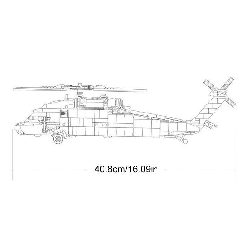 Setul de construcție Sluban M38-B1012 Elicopter Black Hawk este un set de construcție din 692 de piese care reproduce detaliat elicopterul militar Sikorsky UH-60 Black Hawk, un simbol al aviației militare moderne. Proiectat pentru pasionații de modele militare și constructori de peste 6 ani, acest set oferă o experiență de asamblare captivantă și un model realist, ideal pentru colecții sau joc imaginativ. Cu dimensiuni de aproximativ 40,8 cm lungime, 33 cm lățime și 6,7 cm înălțime, este compatibil cu alte mărci precum LEGO.