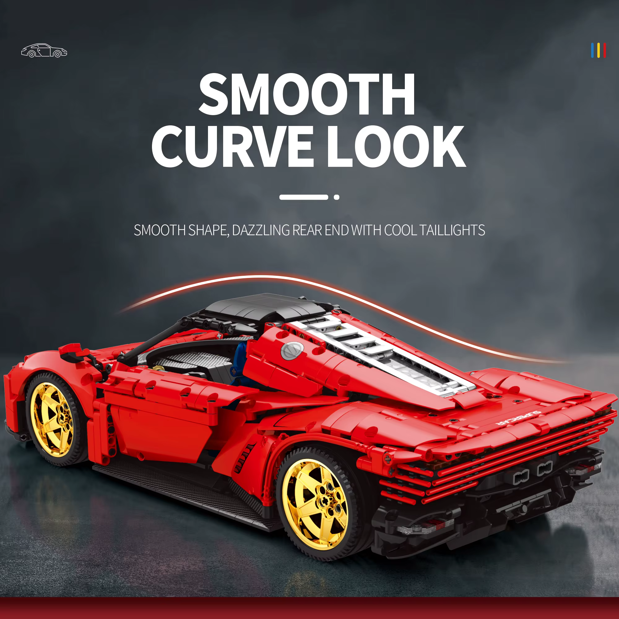 Inspirat de iconicul Ferrari Daytona SP3, un simbol al inovației și vitezei din seria limitată Icona, acest set capturează esența unui supercar de ultimă generație conceput pentru accelerații fulgerătoare și croaziere pe circuite legendare. Caroseria aerodinamică și joasă, construită cu linii fluide și precise, reflectă designul omagial optimizat pentru reducerea rezistenței și generarea de forțe aerodinamice perfecte, evocând moștenirea modelelor de curse Ferrari precum 330 P3/4.