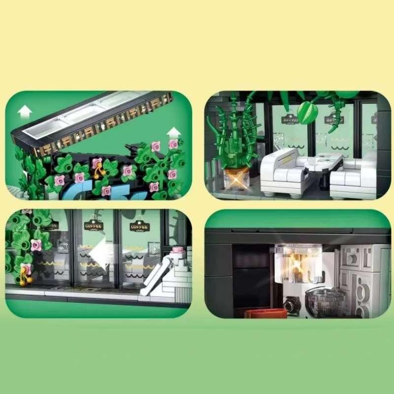 Setul include detalii realiste, precum tejghea, mese, flori detaliate și ferestre translucide. Construit din plastic ABS de calitate, cu efecte de iluminare LED, modelul adaugă un farmec nocturn. Fără minifigurine, setul pune accent pe estetica arhitecturală.