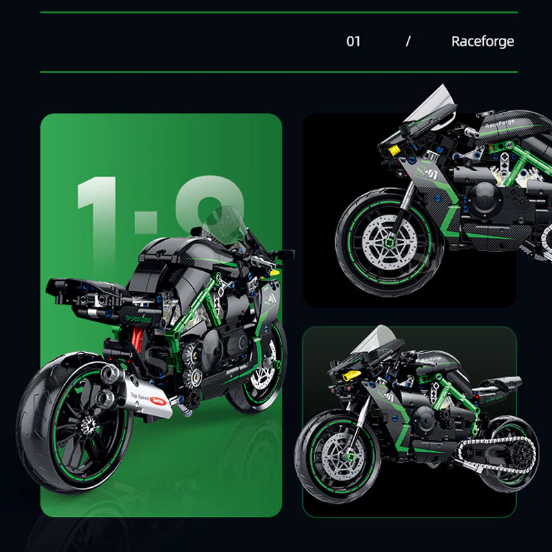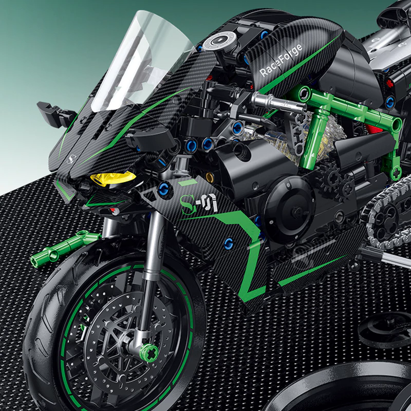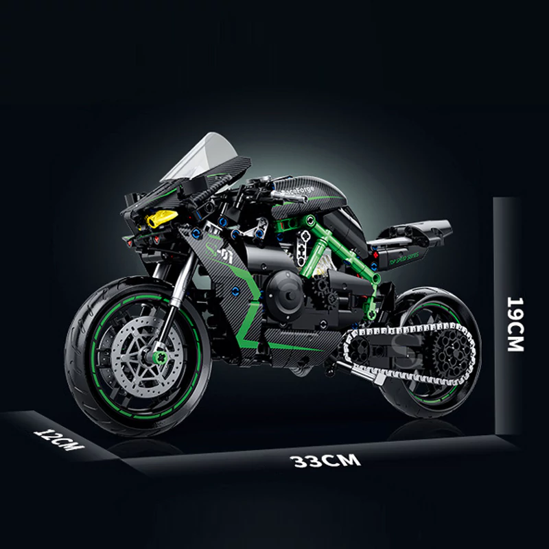 Setul GULY 60532 surprinde designul agresiv al Ninja H2R, cu carenaj aerodinamic, aripi aerodinamice, faruri electrice funcționale și lanț de transmisie detaliat. Include suspensie simulată și roți realiste, reflectând estetica motocicletei. Construit din plastic ABS de calitate, fără minifigurine, modelul pune accent pe realism.
