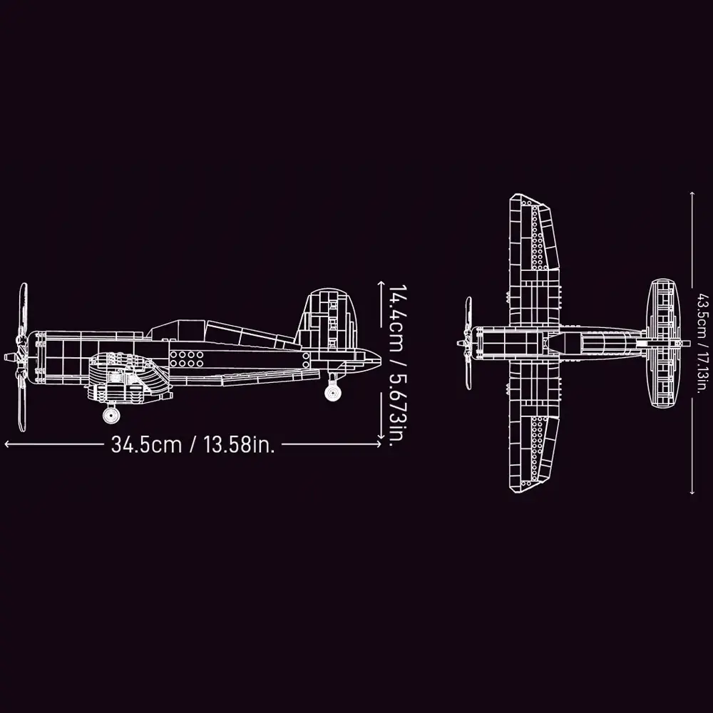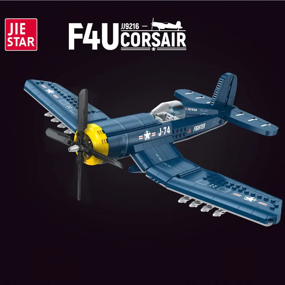 Setul de construcție JIESTAR 9216 Avion Corsair F4U este un set de construcție din 767 de piese, care reproduce cu fidelitate avionul de vânătoare Vought F4U Corsair, un simbol al aviației militare americane din Al Doilea Război Mondial și Războiul din Coreea. Acest set, destinat pasionaților de modele militare și constructorilor de peste 6 ani, combină detaliile istorice cu o experiență de asamblare captivantă. Cu o lungime de aproximativ 35 cm, o anvergură de 24 cm și o înălțime de 10 cm, modelul este compatibil cu alte mărci precum LEGO, fiind perfect pentru colecții sau diorame.