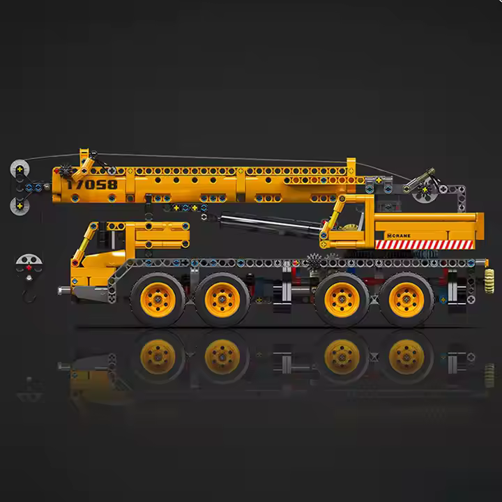 Setul de construcție Mould King 17058 Macara Mecanică este un set de construcție impresionant care combină precizia ingineriei cu funcționalitatea realistă precum brațul extensibil, cârligul ajustabil, roțile din față direcționabile și stabilizatorii extensibili.